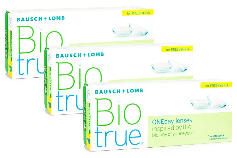 A Biotrue ONEday for Presbyopia lencsék két csomagméretben kaphatók, 30 vagy 90 egyedi lencsével. Ha naponta egy lencsét visel egy csomagból, a 30-as csomag egy hónapig, a 90-es csomag pedig három hónapig tart.