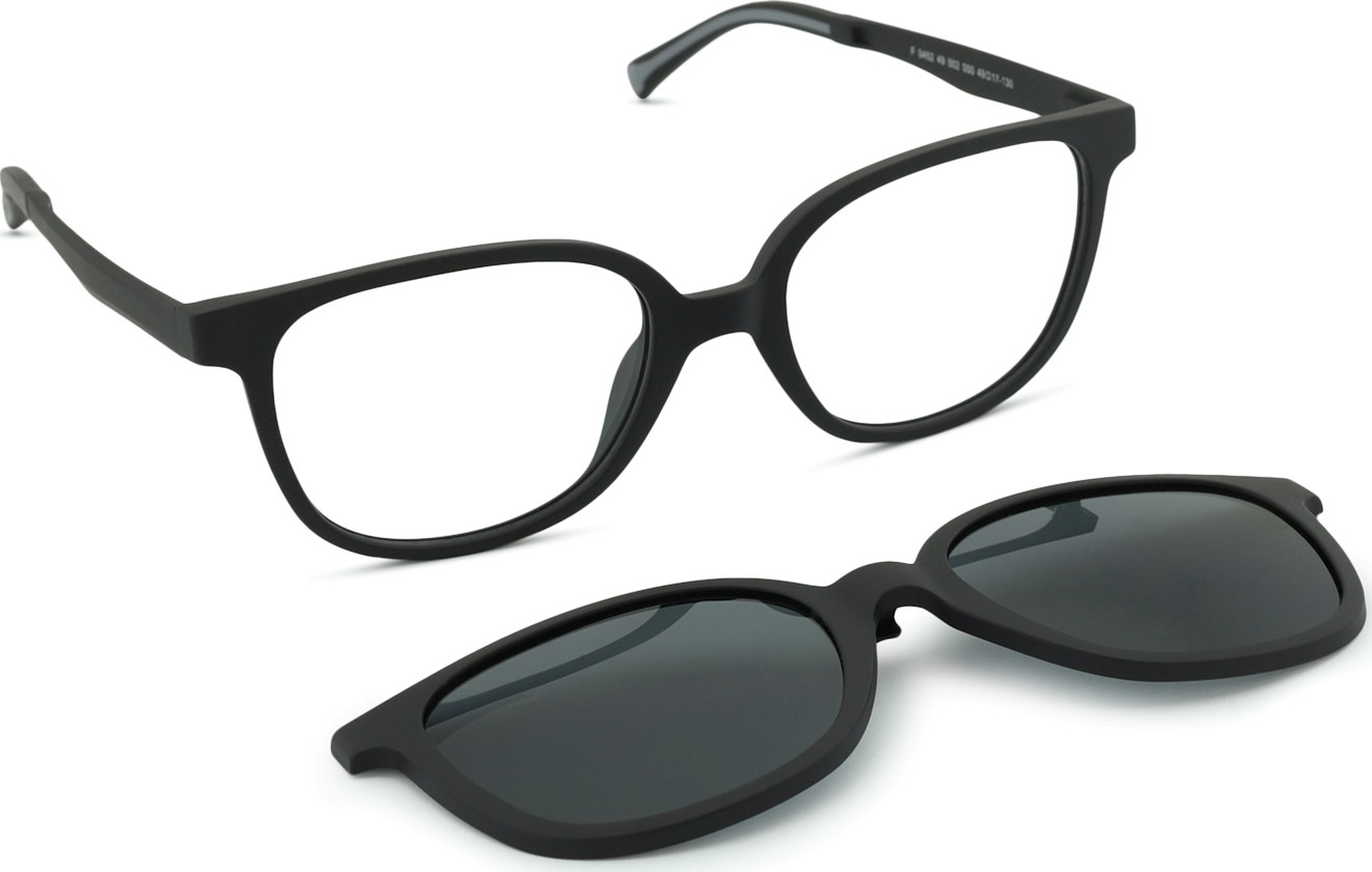 - A szemüveghez tartozik egy kiegészítő napszemüveg klip is, amely könnyen rögzíthető a szemüvegkeretre, és napszemüveggé alakítja azt. A klip tökéletesen követi a keret formáját, és felszerelése nagyon gyors és egyszerű. Azonban, ha magasabb plusz dioptriája van, vékonyabb lencseváltozatot kell választani, hogy a klip ne érintse a lencsék elülső gömbfelületét, és megfelelően illeszkedjen a keretre.