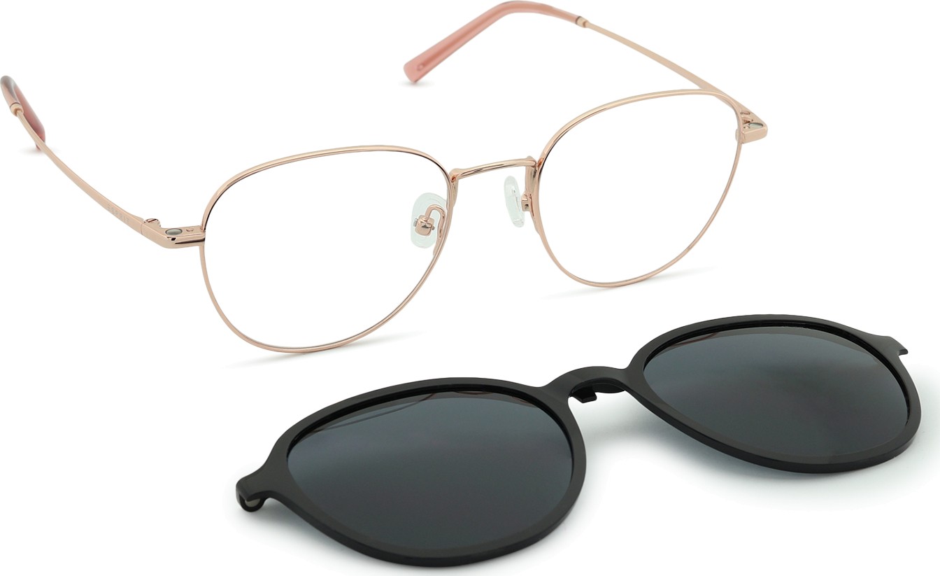 - A szemüveghez tartozik egy kiegészítő napszemüveg klip is, amely könnyen rögzíthető a szemüvegkeretre, és napszemüveggé alakítja azt. A klip tökéletesen követi a keret formáját, és felszerelése nagyon gyors és egyszerű. Azonban, ha magasabb plusz dioptriája van, vékonyabb lencseváltozatot kell választani, hogy a klip ne érintse a lencsék elülső gömbfelületét, és megfelelően illeszkedjen a keretre.