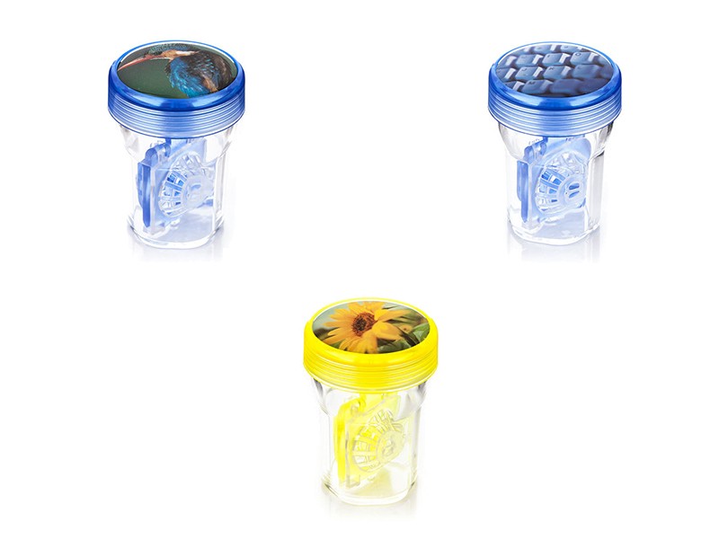 A hordós kontaktlencse tok ideális a lencsék tárolására és kémiai fertőtlenítésére. A kellemes forma, az átlátszó tartály színe és az eredeti kép a fedélen biztosan magára vonzza a tekintetet. Válasszon a különböző témák és színek közül.