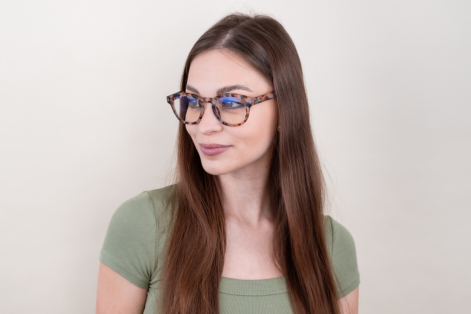 - A keret kék színe tökéletesen illik a hűvös bőrtónushoz és a világosbarna, fekete vagy világosszőke hajhoz.