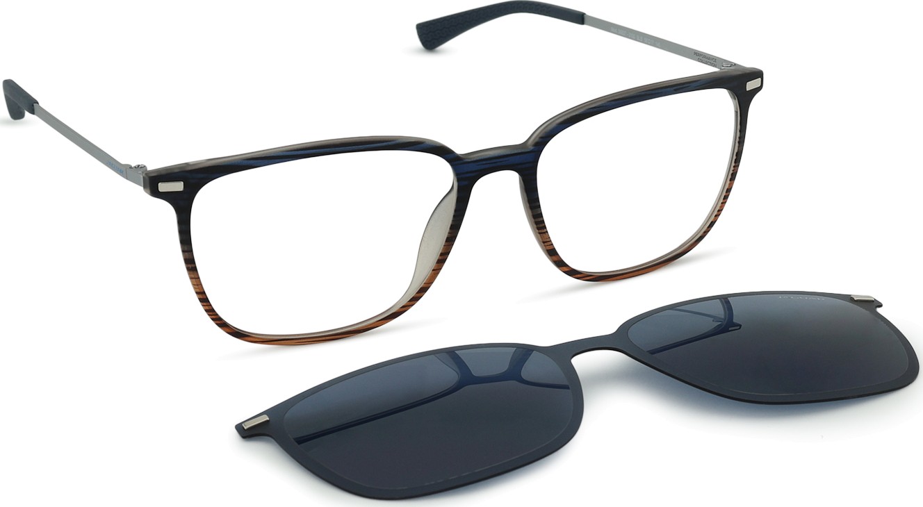 A szemüveghez tartozik egy kiegészítő napszemüveg klip is, amely könnyen rögzíthető a szemüvegkeretre, és napszemüveggé alakítja azt. A klip tökéletesen követi a keret formáját, és felszerelése nagyon gyors és egyszerű. Azonban, ha magasabb plusz dioptriája van, vékonyabb lencseváltozatot kell választani, hogy a klip ne érintse a lencsék elülső gömbfelületét, és megfelelően illeszkedjen a keretre.