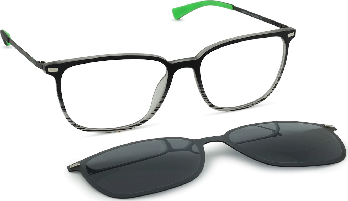 - A szemüveghez tartozik egy kiegészítő napszemüveg klip is, amely könnyen rögzíthető a szemüvegkeretre, és napszemüveggé alakítja azt. A klip tökéletesen követi a keret formáját, és felszerelése nagyon gyors és egyszerű. Azonban, ha magasabb plusz dioptriája van, vékonyabb lencseváltozatot kell választani, hogy a klip ne érintse a lencsék elülső gömbfelületét, és megfelelően illeszkedjen a keretre.