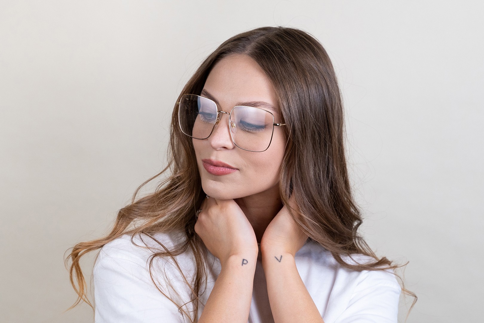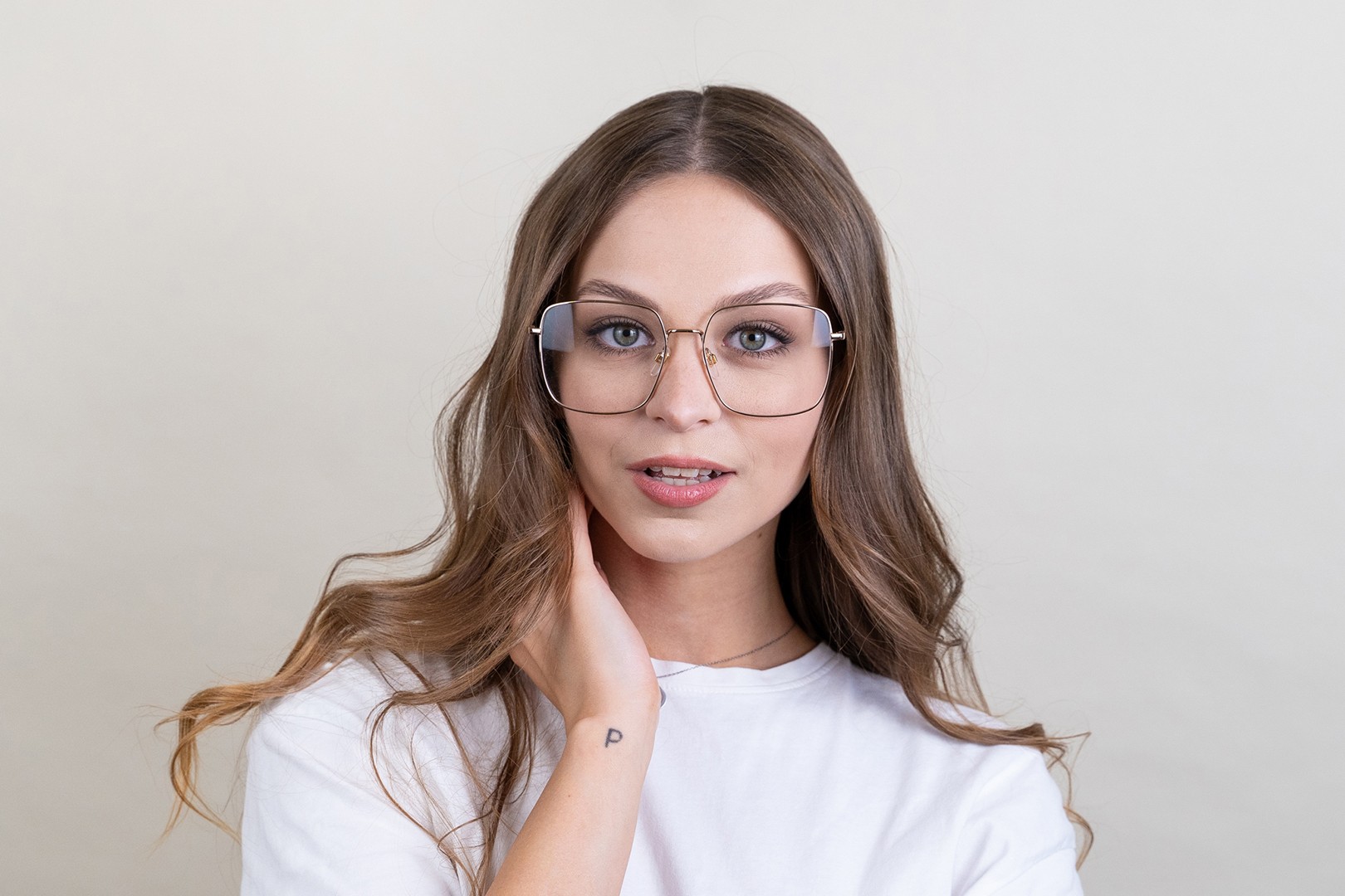 A keret arany színe tökéletesen illik a meleg bőrtónushoz és a sötét