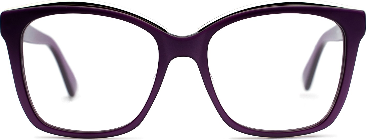 A keret lila színe tökéletesen illik a hideg bőrtónushoz és a fekete,
