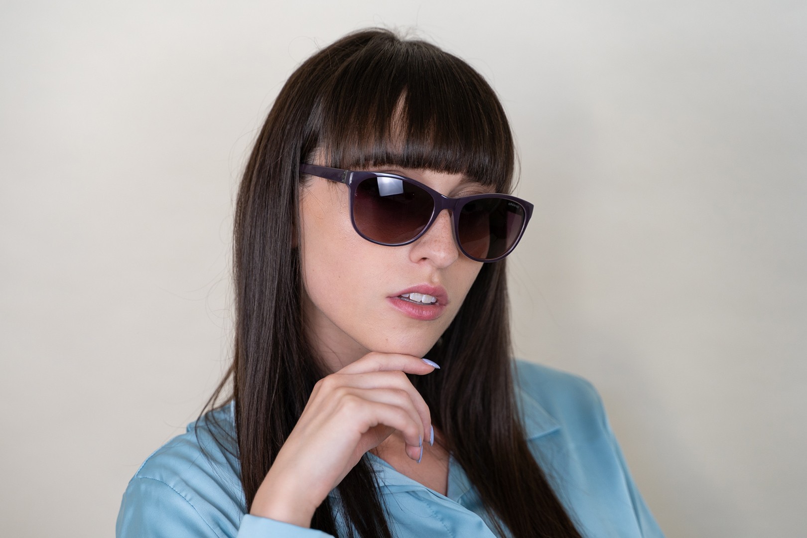 - A keret lila színe tökéletesen illik a hideg bőrtónushoz és a fekete, szürke, fehér vagy világos szőke hajhoz.
