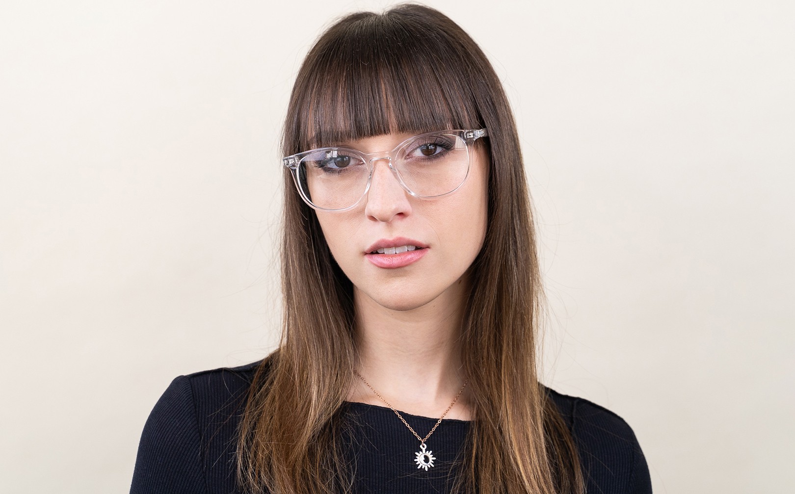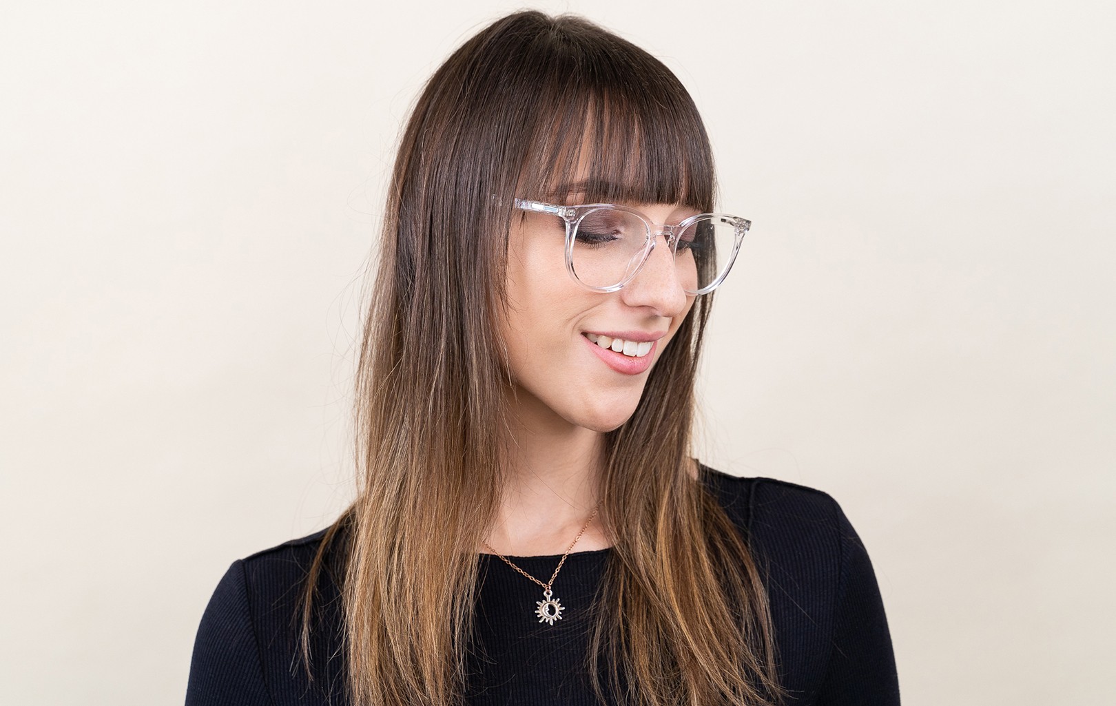 - Az átlátszó keret tökéletesen illik mind a hűvös, mind a meleg bőrtónushoz és minden hajszínhez.