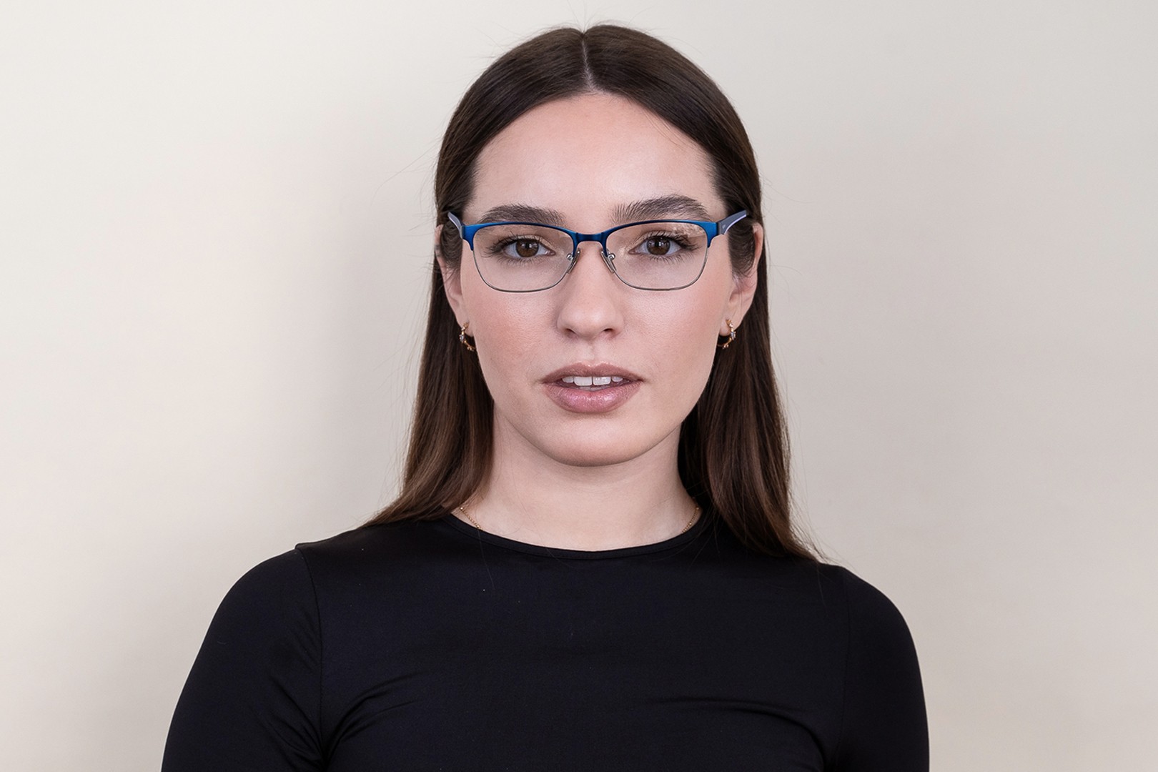 • A keret kék színe tökéletesen illik a hűvös bőrtónushoz és a világosbarna, fekete vagy világosszőke hajhoz.