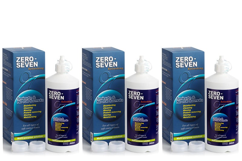 A Zero-Seven Refreshing egy többcélú oldat, amely hipromellózt (HPMC) és D-szorbitot tartalmaz. A HPMC, egy nedvesítőanyag, amely nedves bevonatot hoz létre a kontaktlencse és a szem között, fokozatosan szabadul fel, így kiegészíti és védi a könnyfilmet. A D-szorbit megakadályozza a kontaktlencsék kiszáradását. A NO RUB lehetővé teszi a szennyeződések eltávolítását, fertőtlenítést és fehérje lerakódások eltávolítását mechanikus lencsetisztítás nélkül.